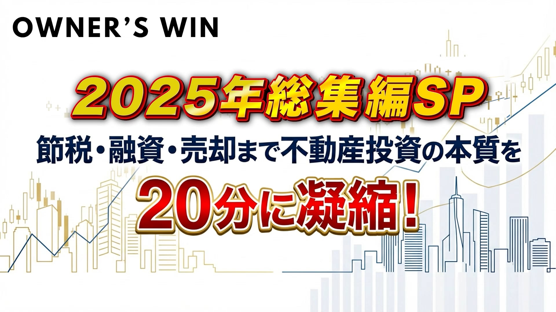 本動画では、2025年にOWNER’S WINでお届けしてきた内容をもとに、 不動産投資の本質を体系的に整理しました! 節税・融資・売却まで、ゲストの方にこれまでお話しいただいた 不動産投資において押さえておきたい重要なポイントを、約20分に凝縮しています。 なぜ「節税」だけを目的にしてはいけないのか? 融資とどう向き合うべきか? 出口を見据えた投資判断の考え方? 今後の不動産市場はどうなるのか? など、これから不動産投資を始めたい方はもちろん、 既に学んできた内容を振り返り・整理したい会員の皆さまにおすすめの内容です。 知識を「点」ではなく「線」でつなぐことで、今後の判断軸がより明確になるはずです! 是非ご覧になってください!