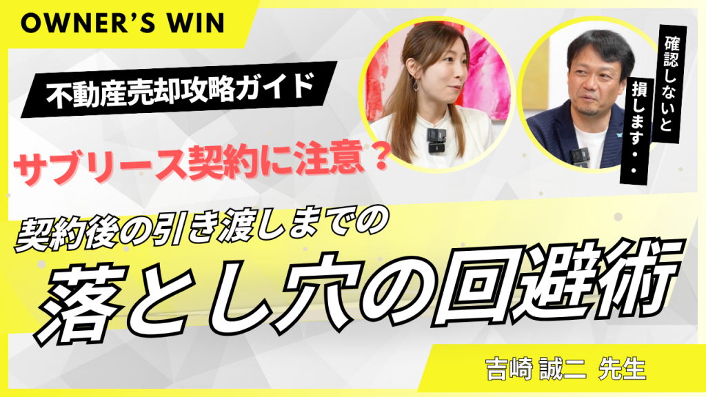 本動画は、契約締結から決済・引き渡しまでの流れに潜む落とし穴を解説します。サブリース契約解除条件、固定資産税・都市計画税の負担区分、設備不具合の告知、契約不適合責任、ローン特約や違約金トラブルなど、後...