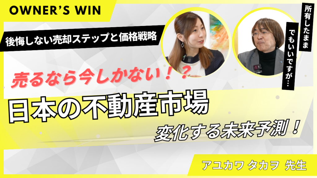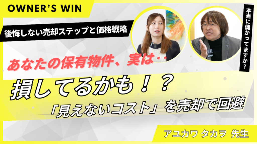 本動画では、売却後に後悔する原因と、その防止策をアユカワ先生が解説します。売却前に確認すべきチェックポイントや市場動向、適切な交渉のポイントを具体例とともに紹介。さらに、OWNER’S WINの活用法...